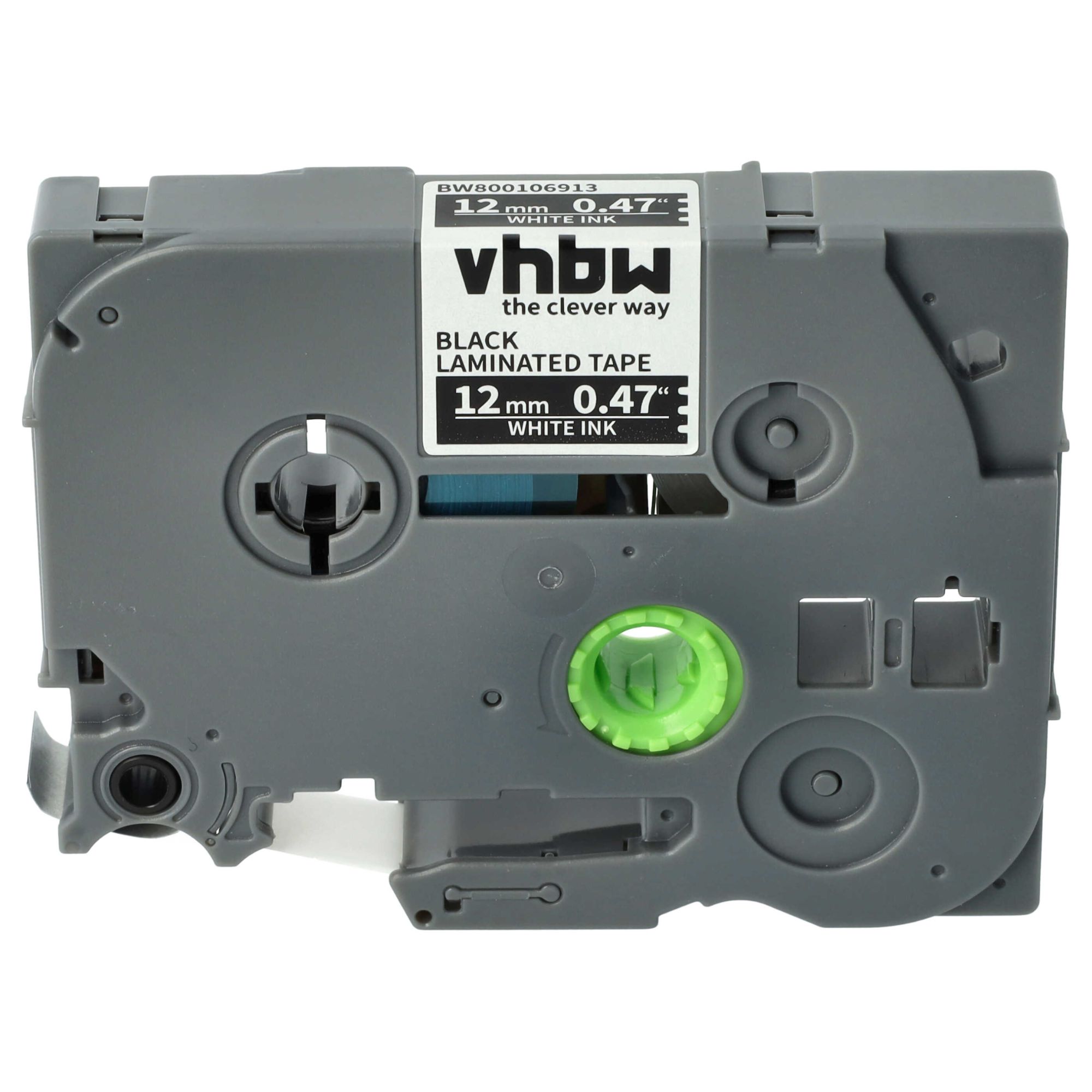 vhbw 1x Ruban compatible avec Brother PT E110, E100B, E115, E105, E100VP imprimante d'étiquettes 12mm Noir sur Blanc ruban de sécurité