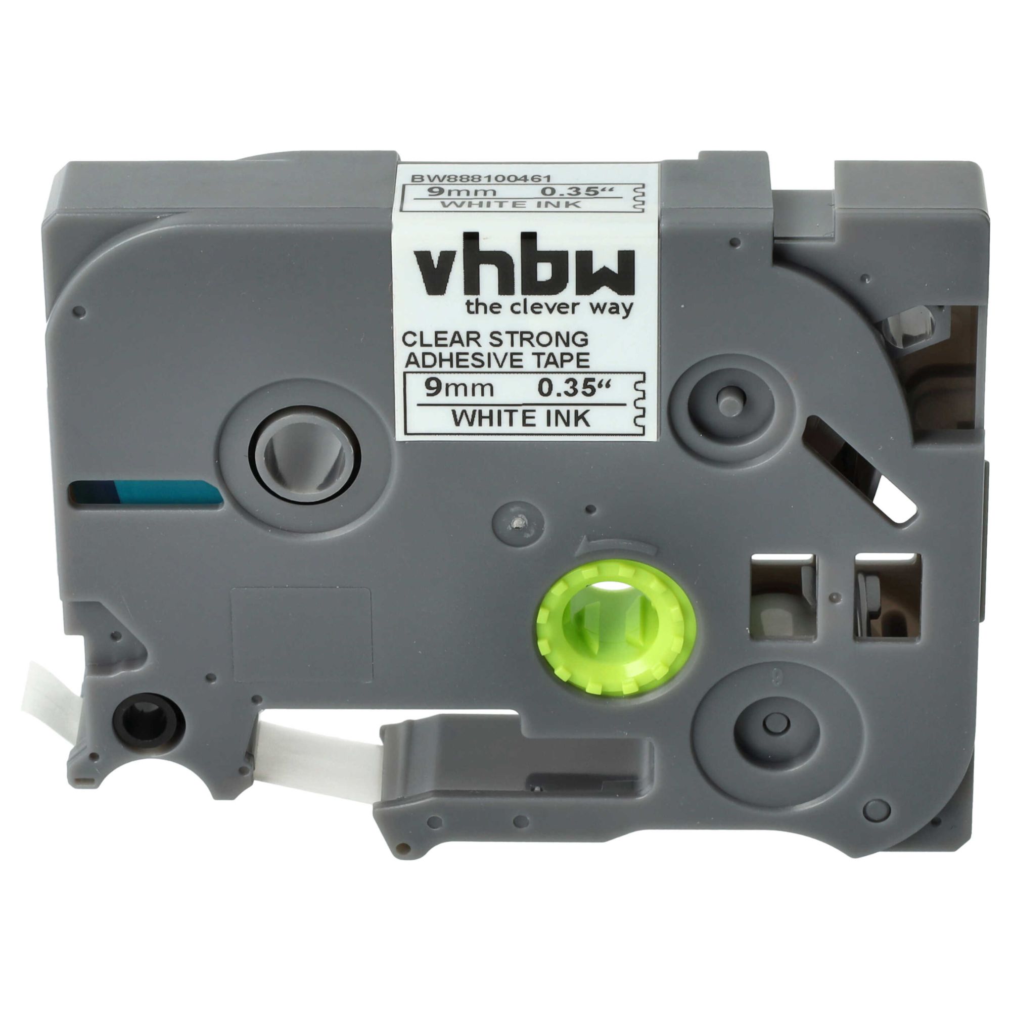 vhbw 1x Ruban compatible avec Brother PT E110, E105, E100VP imprimante d'étiquettes 8m x 9mm Blanc sur Transparent, extraforte, laminée