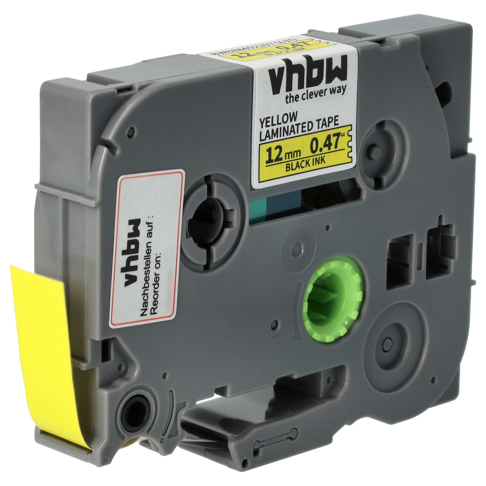 vhbw 1x Ruban compatible avec Brother PT E110, E300, E115, E105, E200, E100VP imprimante d'étiquettes 12mm Noir sur Jaune, laminée