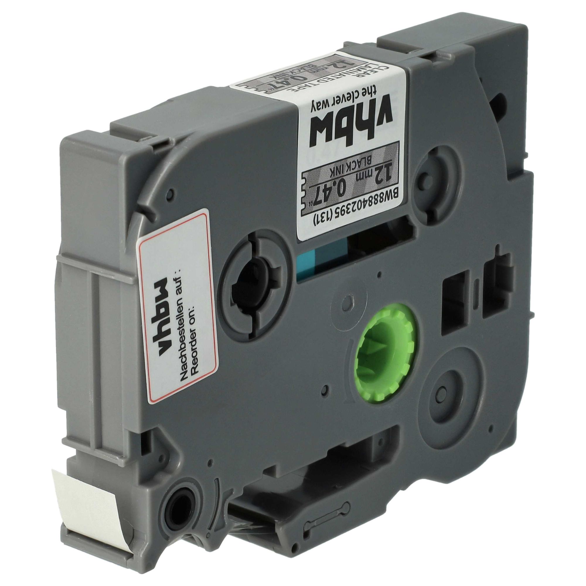 vhbw Ruban compatible avec Brother PT E110, E105, E300VP, E115, E200, E300, GL-100, H100 imprimante d'étiquettes 12mm Noir sur Transparent