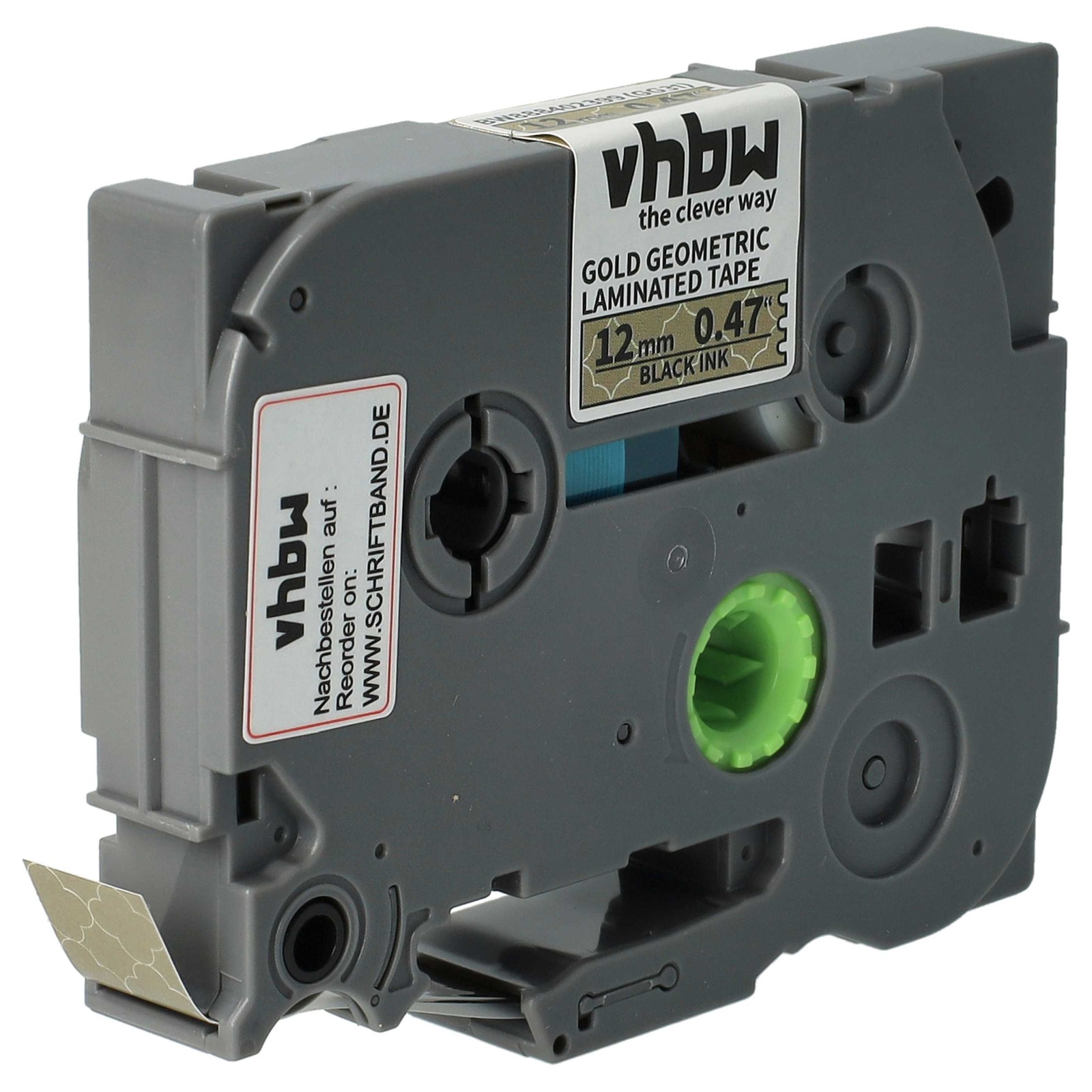 vhbw Ruban compatible avec Brother PT E110, E115, E105, E200 imprimante d'étiquettes 4m x 12mm Noir sur Or (géométrique), laminée