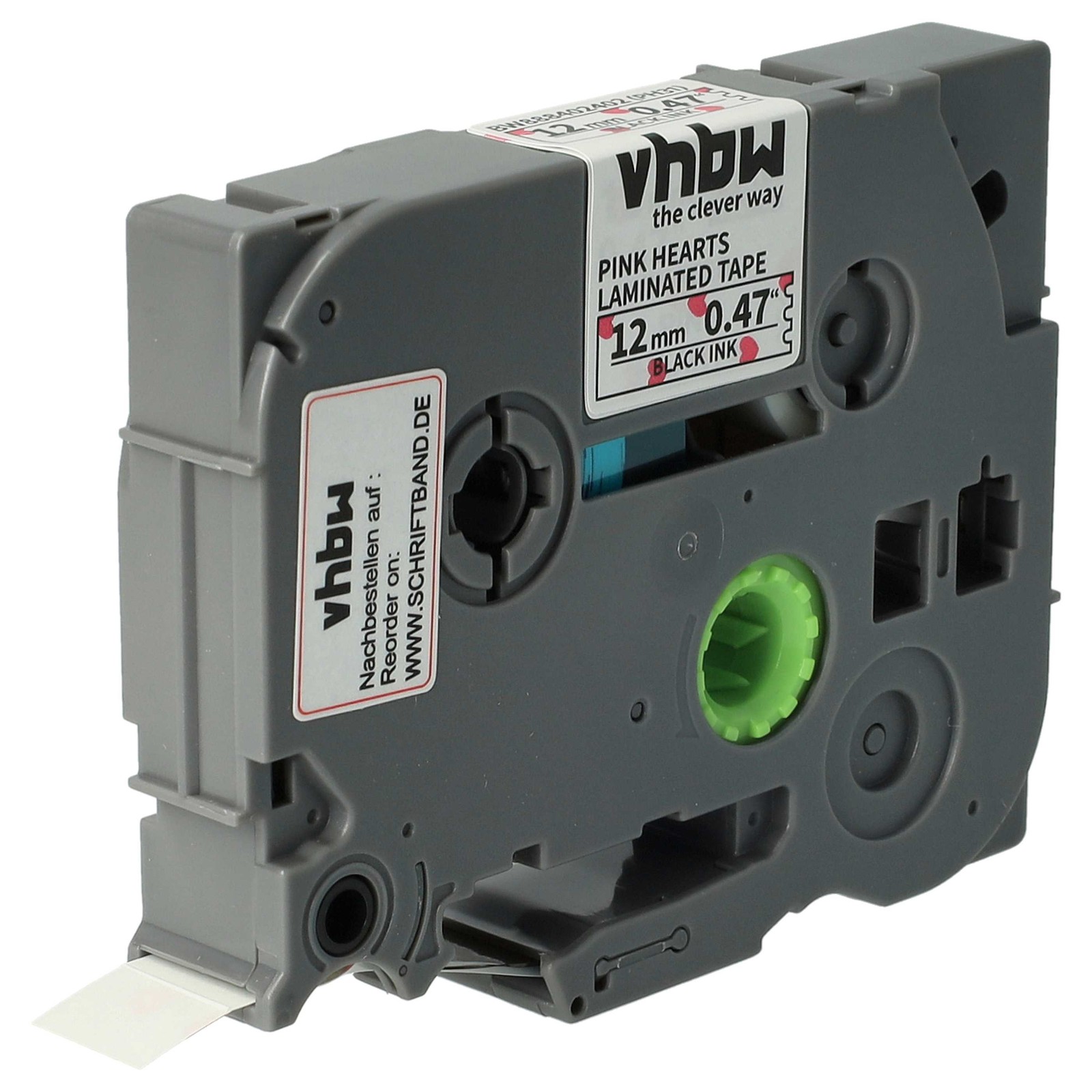 vhbw Ruban compatible avec Brother PT E110, E100VP, E105 imprimante d'étiquettes 4m x 12mm Noir sur Blanc avec coeurs roses, laminée