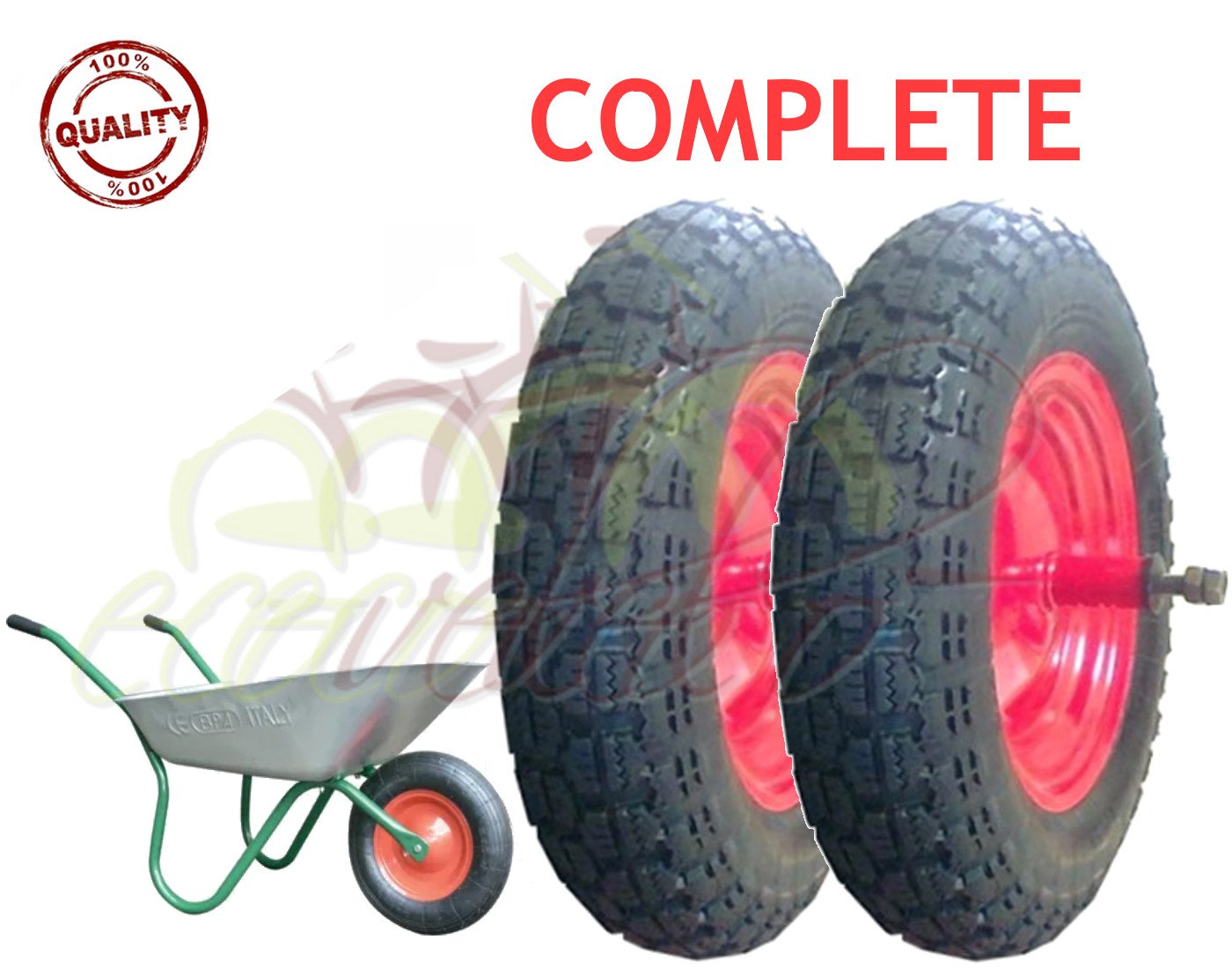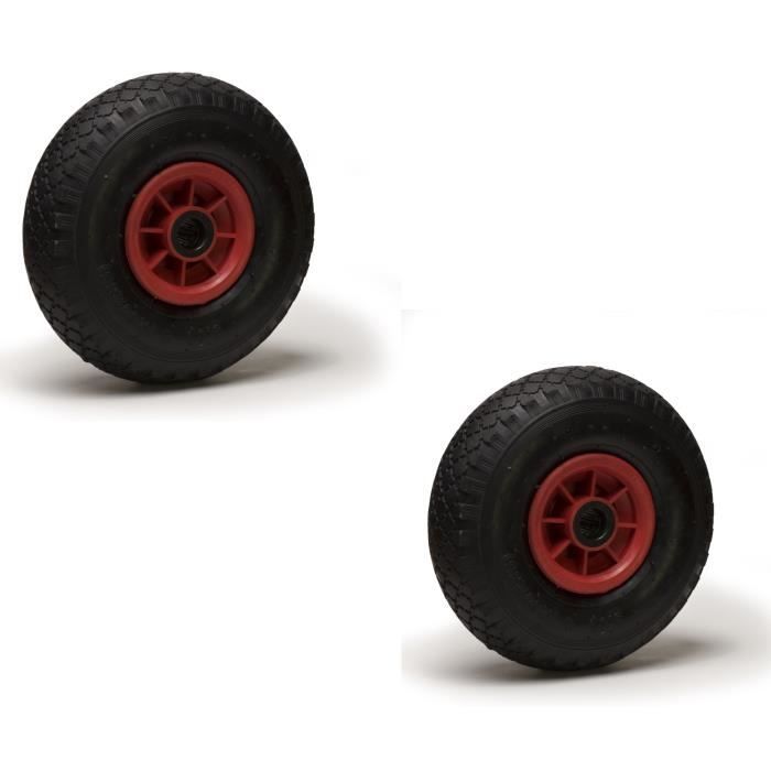 Lot de 4 roues de brouette 3.00-4 complète à air jante en acier pour essieu de 16 mm 100kg noir/gris