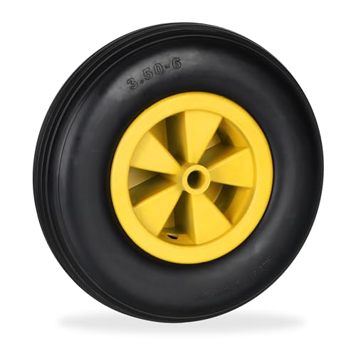 Relaxdays Roue de brouette 3.50-6, Caoutchouc, Jante en Plastique, Rechange, increvable, 100 kg Max., Noir - Jaune