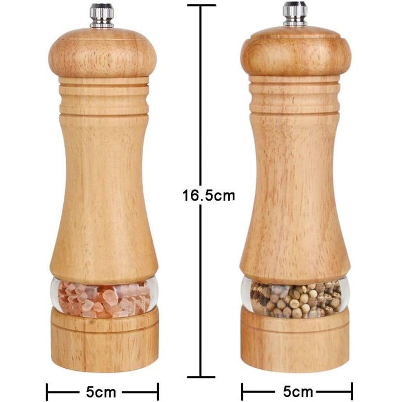 Lot de 2,Salieres et Poivrieres Bois, Réglables Avec Broyeur à épices en Céramique,6' - Ahlsen