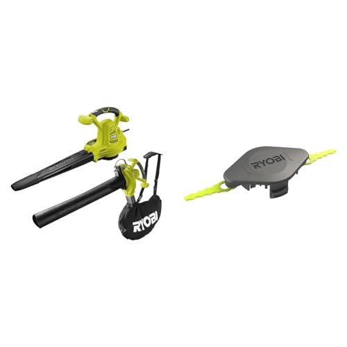 RYOBI - Souffleur Aspiro-Broyeur 2800W 2-en-1 - Vitesse Soufflerie 345 km/h - Décharge de Traction & Tête Double Lames Dentelées (+10 Lames) pour Coupe-Bordures, Dresse-Bordures
