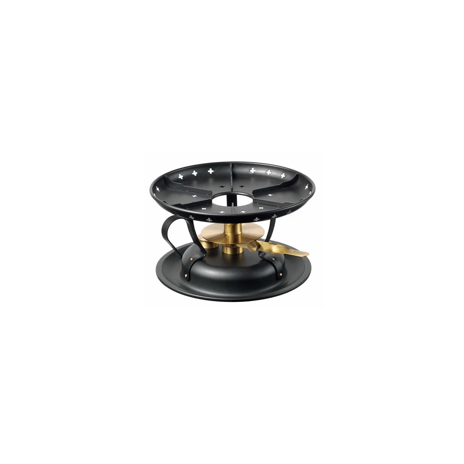 Kisag Réchaud Black Cast Ø 20 × 11 cm avec brûleur à gaz de sécurité 1,1 kW, réchaud en fonte et acier inoxydable pour fondue, flamme réglable en continu, facile à nettoyer, chauffe-plats Swiss Design