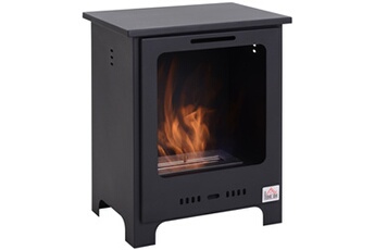 Cheminée bioéthanol sur pieds style néo-rétro poêle 1 brûleur 1,5 L dim. 40L x 30l x 50H cm couverture 20-25 m² noir