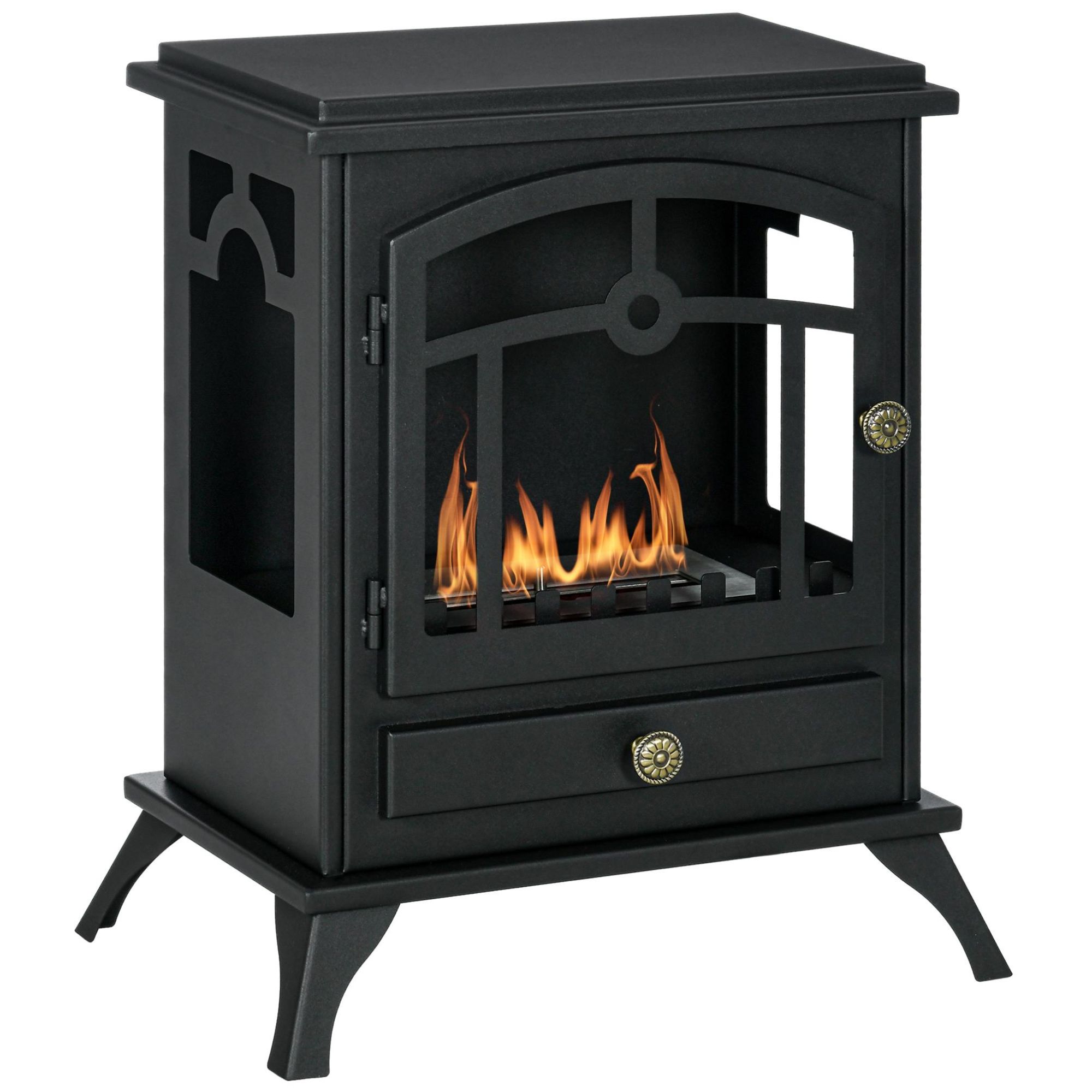 Cheminée bioéthanol sur pied style néo-rétro poêle 1 brûleur 1,2 L dim. 45L x 28l x 54H cm couverture 20-25 m² acier noir
