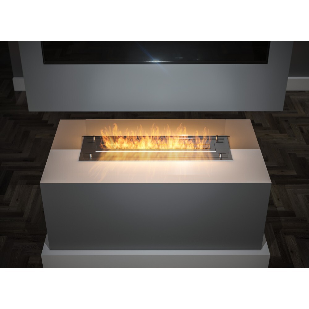 Insert/support brûleur bioéthanol 100cm en inox avec verre inclus