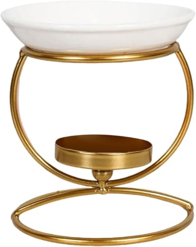 WD&CD Brûleur à Huile Essentielle en Céramique en Métal Or, Brule Parfum avec Bol en Céramique, Bruleur Fondant pour Porte Bougie Décoratif à la Maison