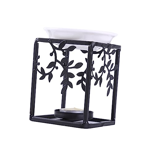 PQCLXUYA Brûleur à huile essentielle en métal avec bol en céramique, bougeoir d'aromathérapie pour la maison, le bureau, la chambre à coucher, le salon, idée cadeau (noir)