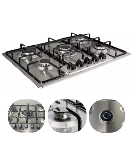 Cuisinière à Gaz Intégrée avec 5 Brûleurs - Plaque Gaz Naturel - Cuisinière à Gaz Naturel - Surface en Verre Trempé - 5 Feux