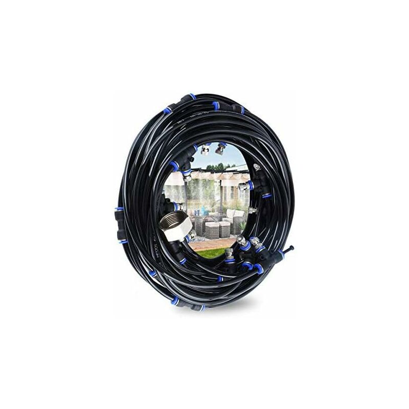Brumisateur d'extérieur, 18 m, avec 20 buses, 6 buses de rechange et 1 adaptateur (laiton, 19 mm), pour parc aquatique, terrasse, jardin, serre,
