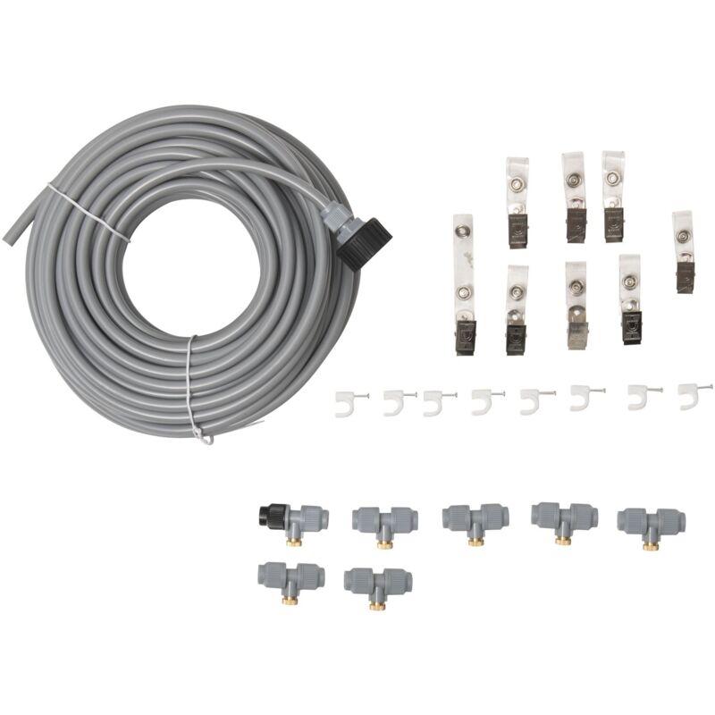 Systeme Brumisation, brumisateur terrasse exterieur Kit, tuyau d'arrosage 5 m + 10 buses de brumisation + 10 sièges de brumisation + 5 bouchons
