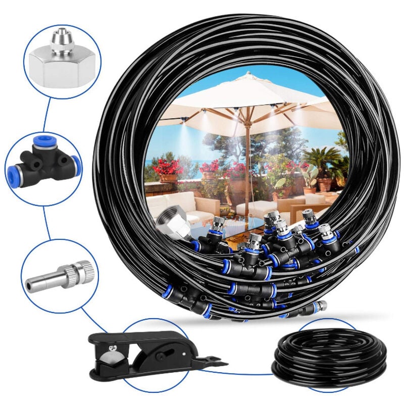 Système de Brumisation 15M, Brumisateur Terrasse Système de Refroidissement de Brumisation Kit de Tuyau Brumisateur Extérieur pour Jardin Parasol