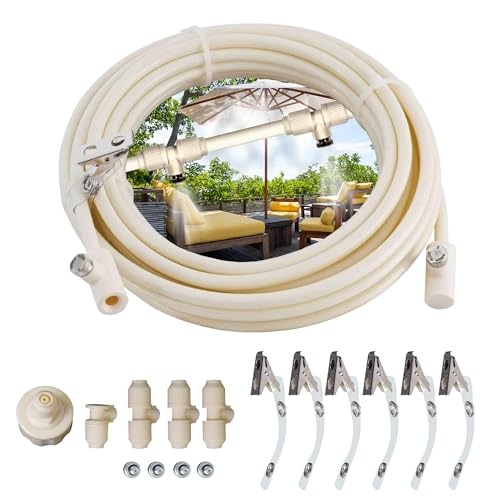 LUOZIQINX Kit D'Irrigation Système de Brumisateur Extérieur, Système de Refroidissement ExtéRieur, Kit de Tuyau Brumisateur pour Jardin, Terrasse, Parasol, Serre,Blanc,15m/49.2ft