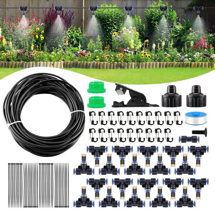 Système de refroidissement brumisateur, kit d'arrosage avec buses réglables, système de refroidissement par brumisation extérieure, pour terrasse, parasol, pelouse, serre (5 m)