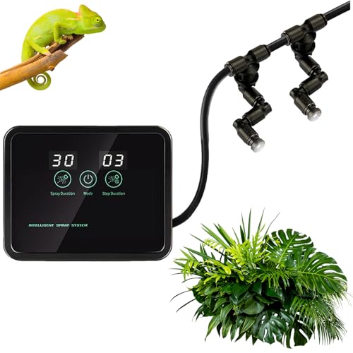 Fockety Système de pulvérisation Intelligent Reptile Fogger, brumisateur Automatique avec Buses réglables à 360 degrés et minuterie, humidificateur pour Terrarium destiné