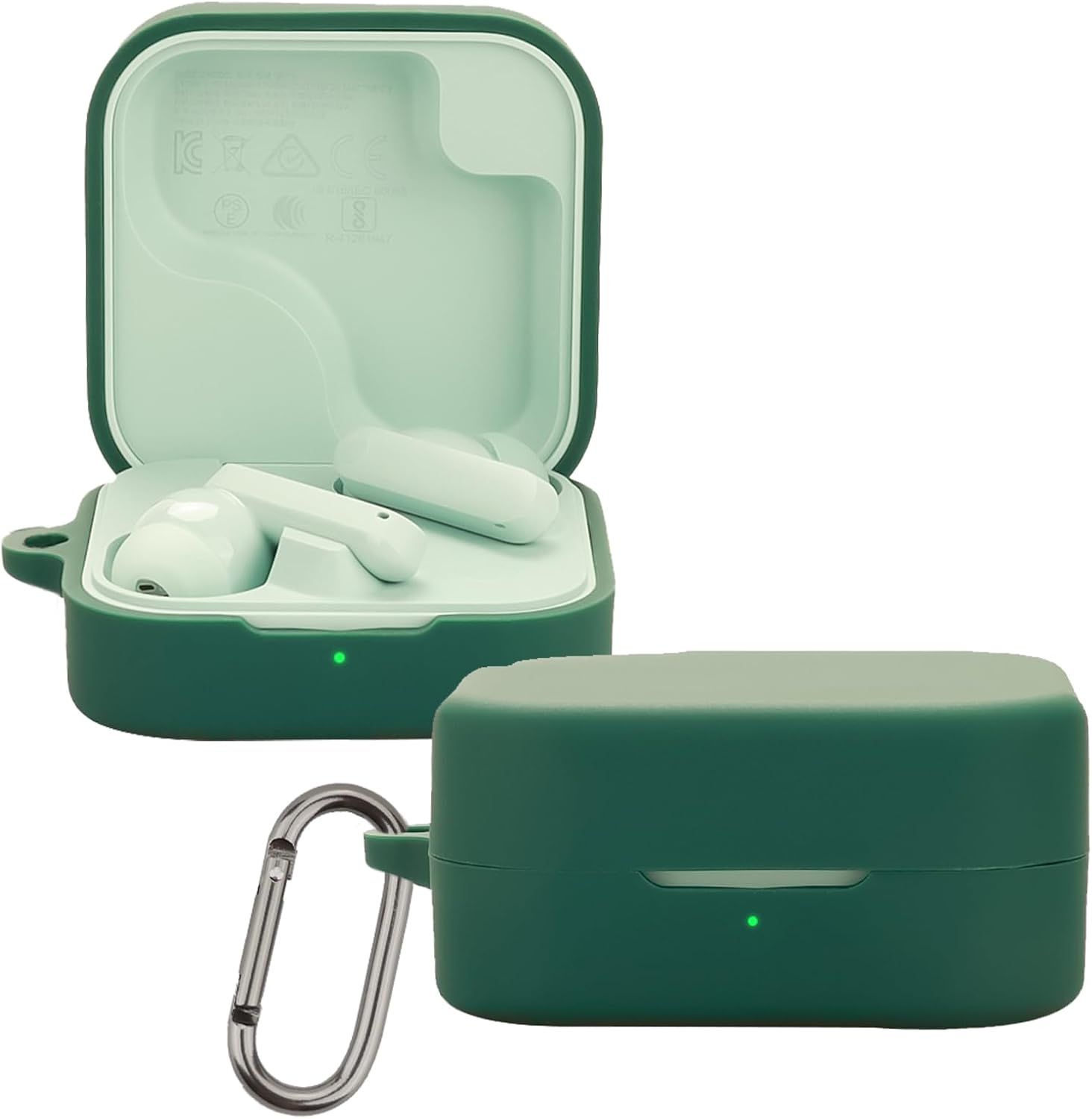 KUSINHOKA Coque pour CMF by Nothing Buds 2/Buds 2 Plus, Housse Protection en Silicone avec Mousqueton, Ultra Mince Antichoc Couverture Complète Protection Étui Protecteur Accessoires, Vert