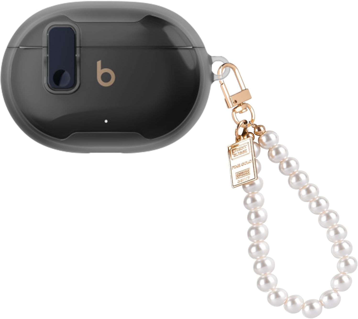 DiyGody Coque Compatible avec Beats Studio Buds & Beats Studio Buds Plus, Housse en TPU Souple avec Porte-clés Perle pour Fille,Étui de Protection Antichoc Anti-rayures Antidérapant, Noir Transparente