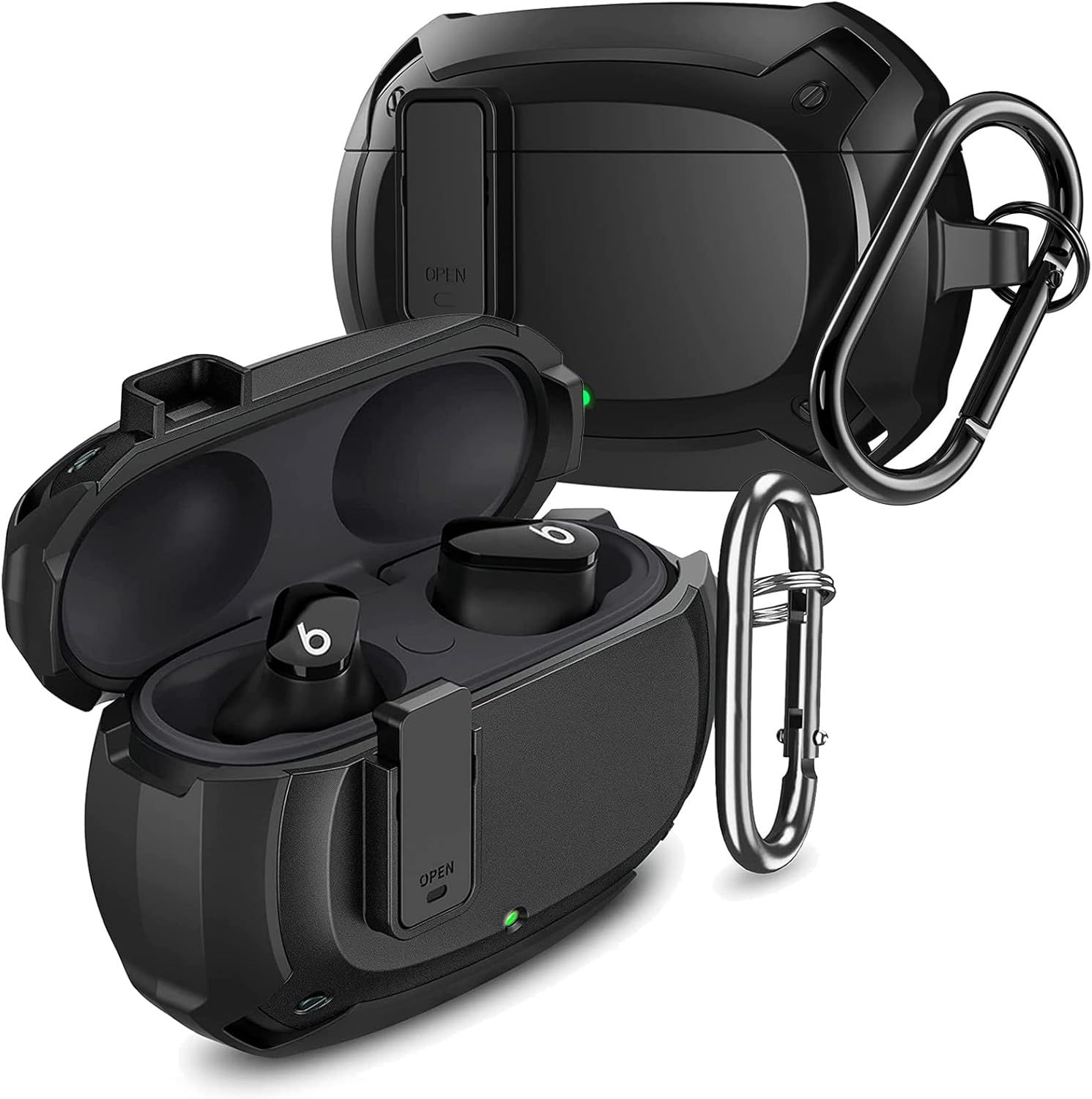 MEMELOKA Coque pour Beats Studio Buds+/Beats Studio Buds Plus, [LED Avant Visible] Antichoc en Silicone Souple & PC Dur Étui de Protection avec Porte-clés et Couvercle de Verrouillage, Noir + Vert
