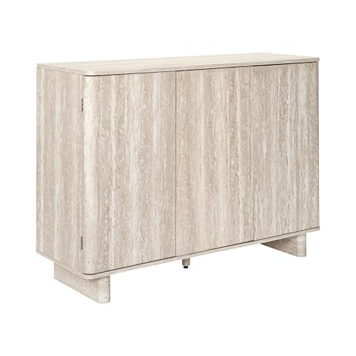 HOME DECO FACTORY - HD7764 - Buffet 3 Portes Pietra en Bois Effet Pierre - Rangement Élégant pour Salon ou Salle à Manger - Dimensions 150X40X80 cm - Finition Beige - Taille Standard