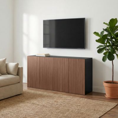 Buffet 4 portes effet noyer et noir GoodHome Atomia H. 75 x L. 150 x P. 35 cm