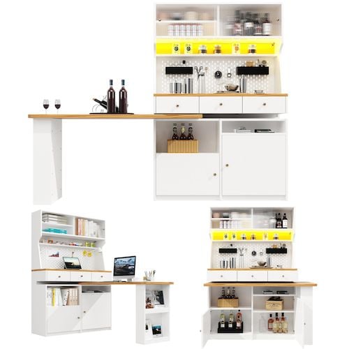 Buffet de cuisine 4 portes 3 tiroirs - 120 cm blanc led mdf