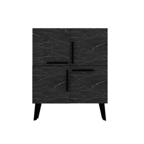 Buffet carré 4 portes en bois effet marbré - Noir
