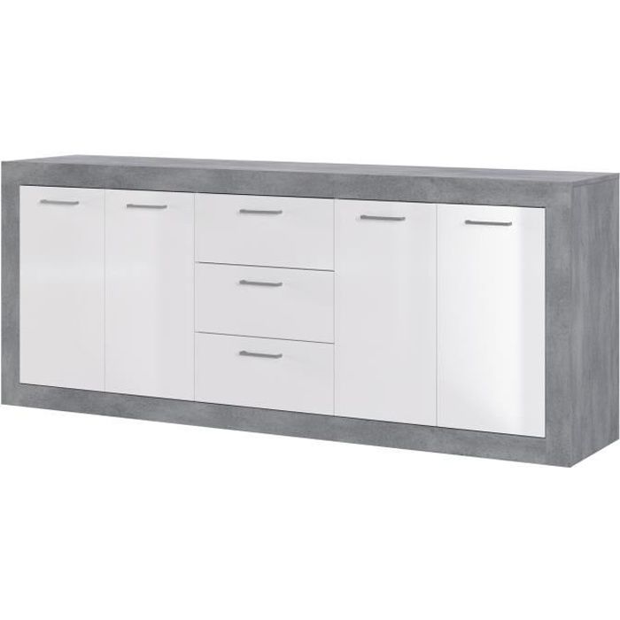 Vente Unique Buffet SEFRO 4 portes et 4 niches Blanc laqué et béton