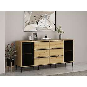 Vente Unique Buffet avec 2 portes en verre trempé et 6 tiroirs Naturel et noir MOLINIA