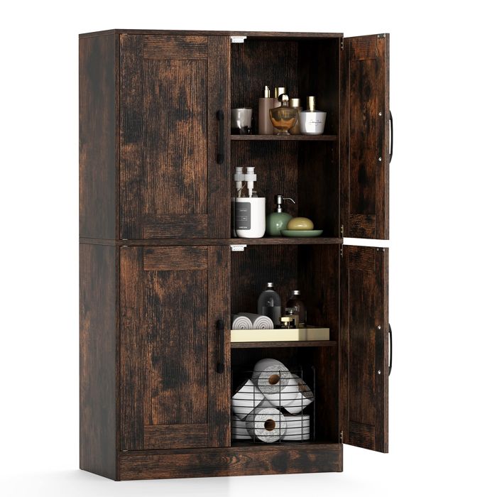 GIANTEX Buffet de Cuisine- Style Industriel- 4 Portes- Étagères Réglables- Armoire de Rangement- Salon Bureau- 60x30x110cm- Marron