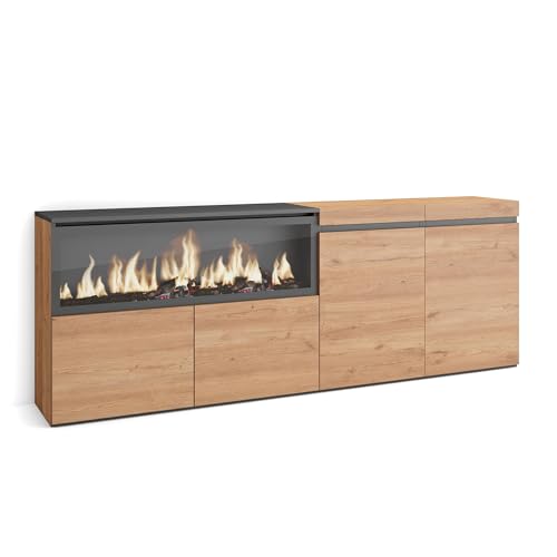 Skraut Home | Buffet Salon et Cuisine | Meuble de Rangement, Commode | 210 | 4 Portes | Cheminée électrique XXL | Style Moderne | Chêne