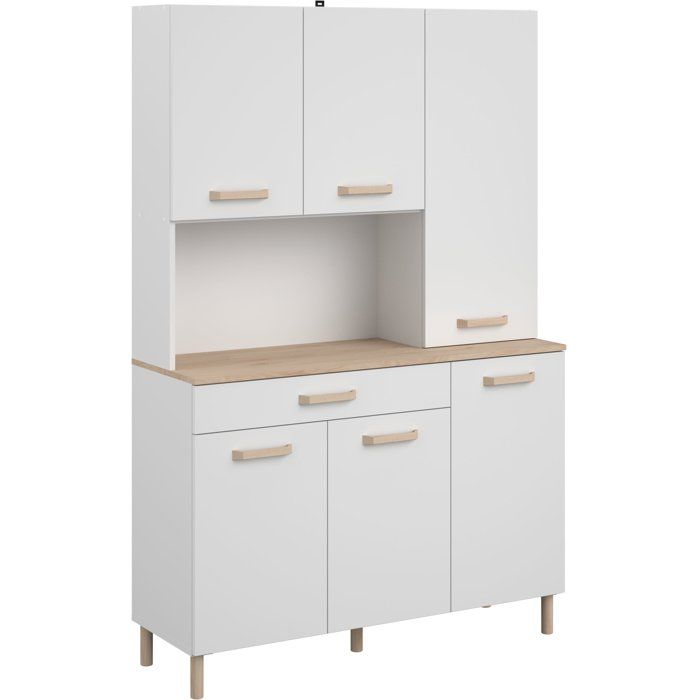 Buffet de cuisine - ESSENTIEL 2 - 1201 x 403 x 1826 cm - Blanc / Chêne - PARISOT