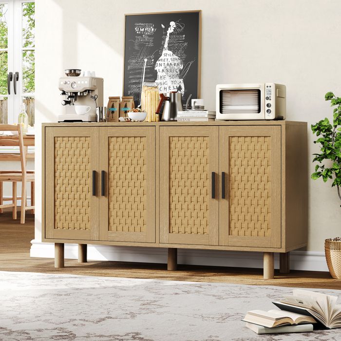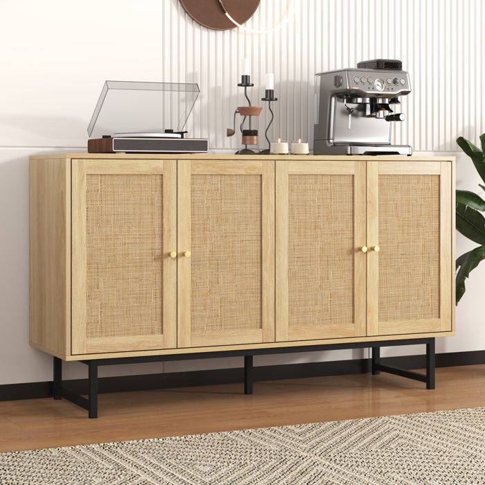 Buffet - Buffet salon en rotin 4 portes - Étagères réglables - Panneaux de particules - 140x40x80 cm