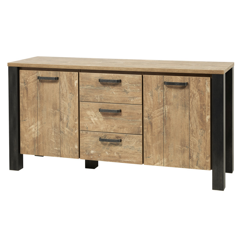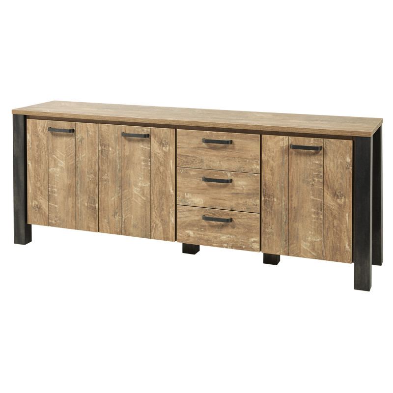 Buffet/bahut industriel 3 portes/3 tiroirs Alabama Chêne clair
