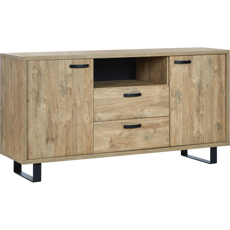 Buffet/bahut industriel 220 cm chêne/noir Nixon Chêne/noir