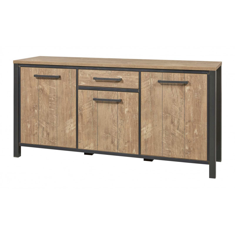 Buffet/bahut industriel 3 portes/1 tiroir coloris teck Toledo Teck Bahut 183 cm