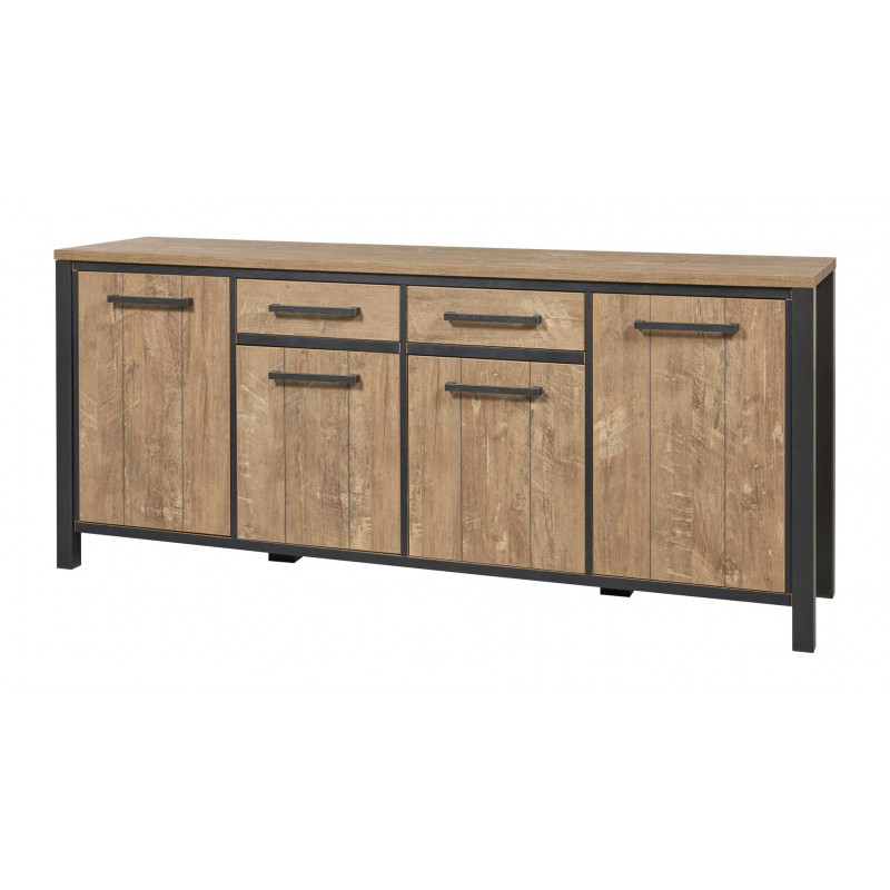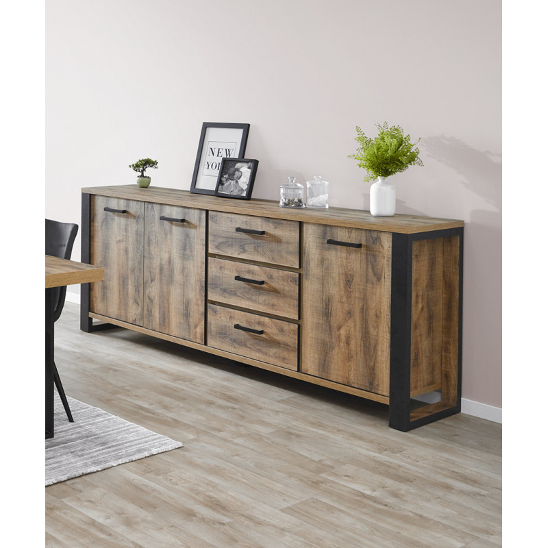 Buffet/bahut industriel 230 cm chêne/anthracite Alrik Chêne