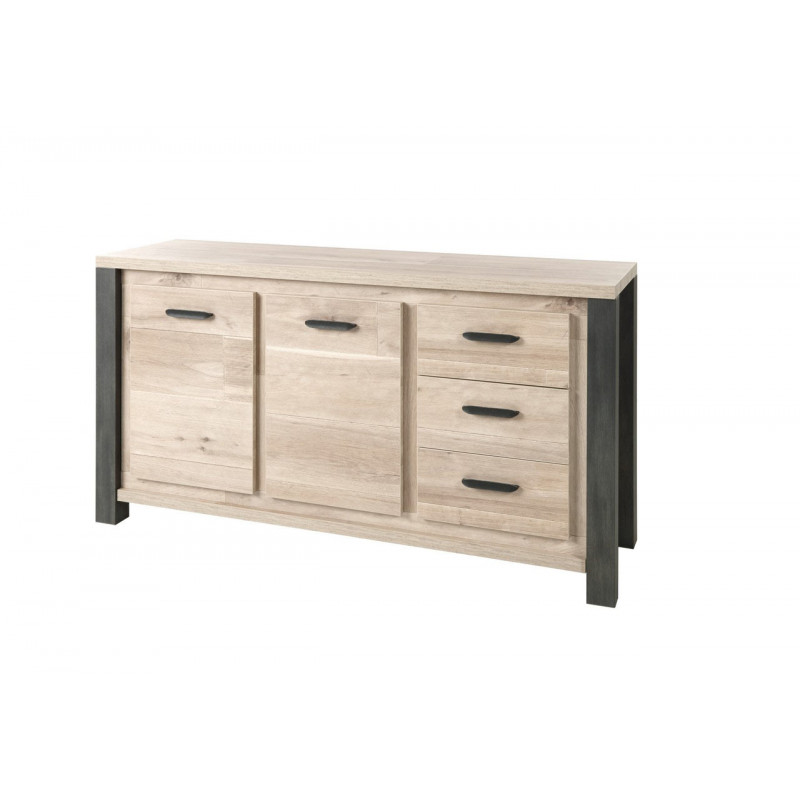 Buffet/bahut industriel 2 portes/3 tiroirs Alabama Chêne clair