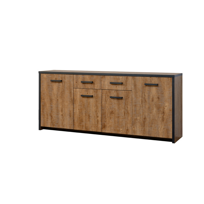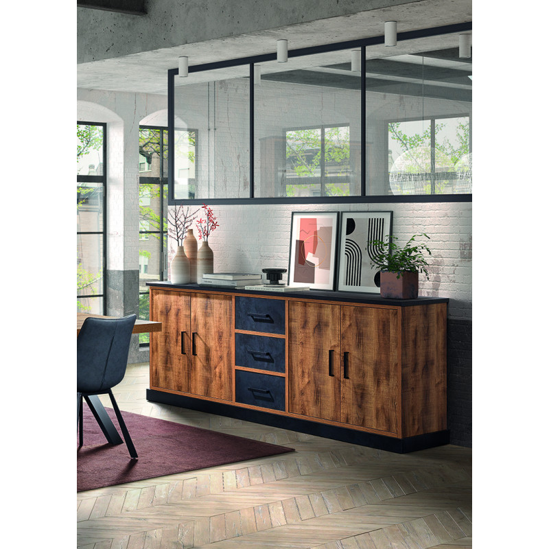 Buffet/bahut industriel 4 portes/2 tiroirs coloris teck Toledo Teck