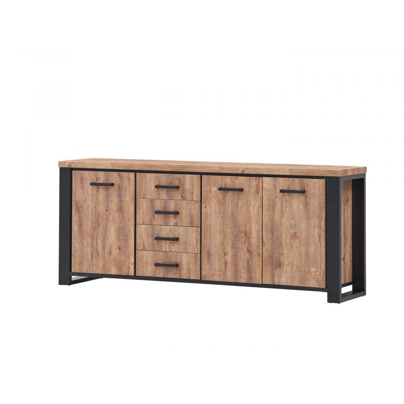 Buffet/bahut industriel 226 cm chêne/noir Odessa Chêne