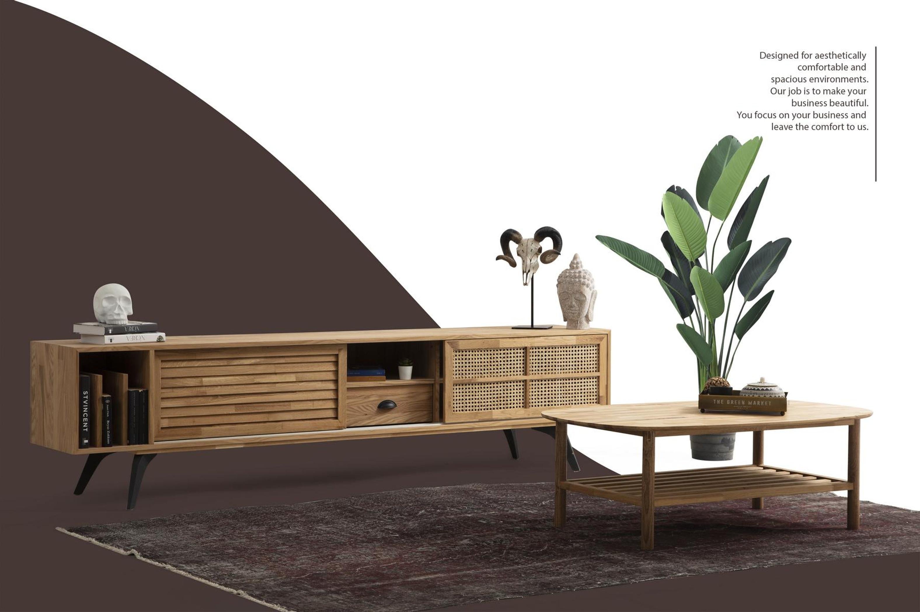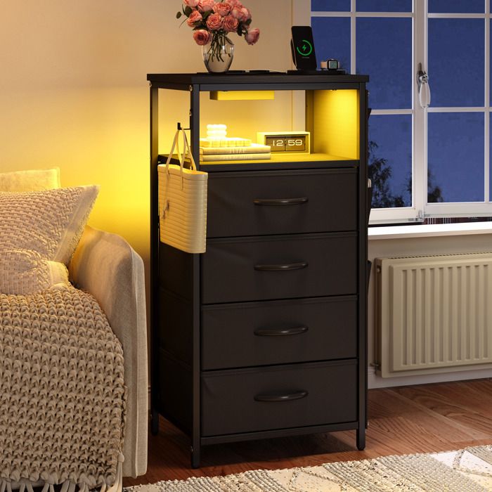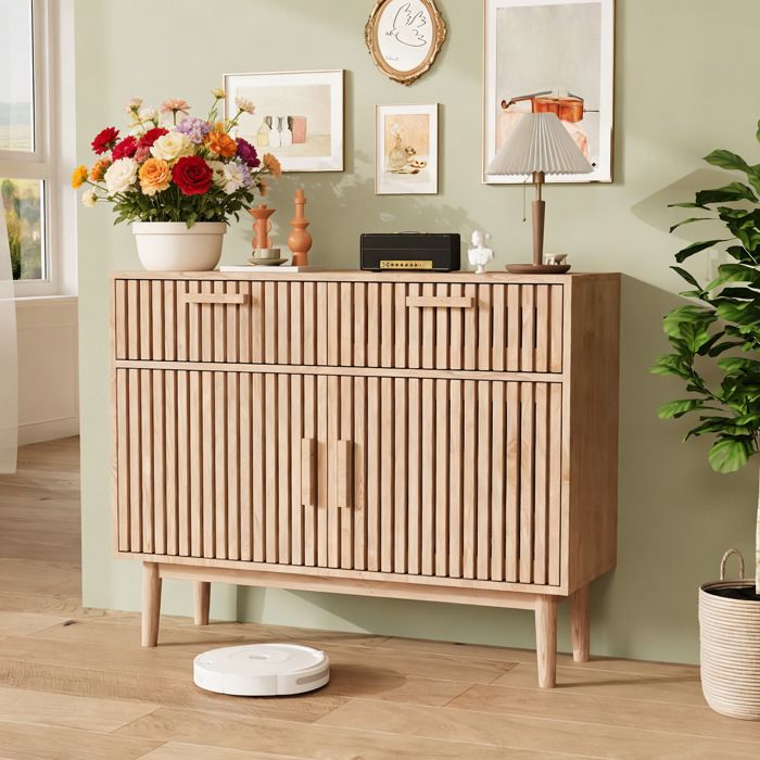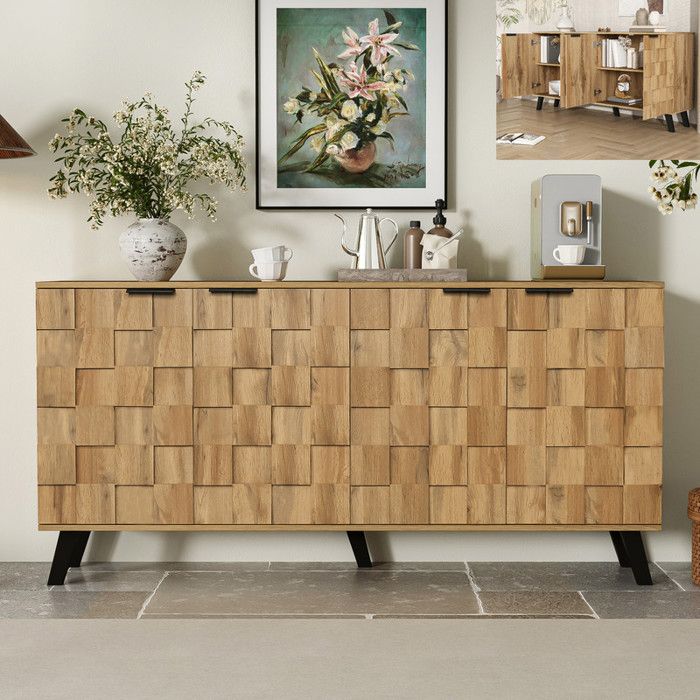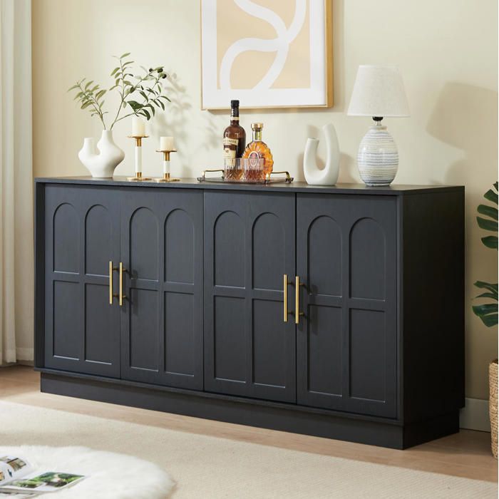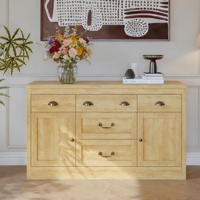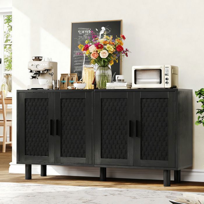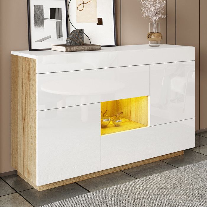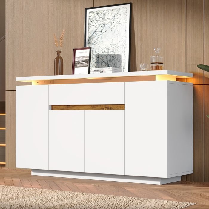 Buffet avec 6 tiroirs, commode design moderne, buffet de salon en bois, noir et blanc 140x38x74.5 cm