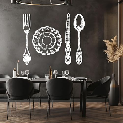 Ensemble de 4 pièces : Couteau, cuillère, Fourchette, Assiette, décoration Murale en métal, Sculpture de Buffet Vintage, décoration Murale pour Cuisine, Restaurant, Salle à Manger, Bistro (Blanc, 121
