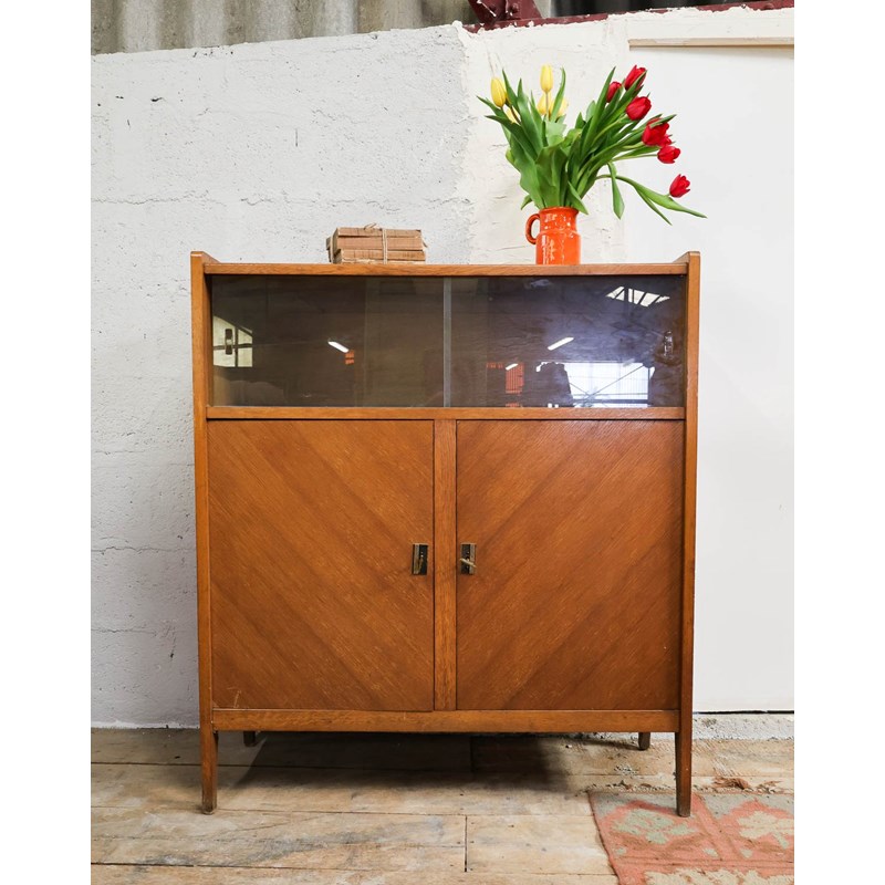 Buffet haut vintage avec portes coulissantes bois clair chêne L70 cm EPIC