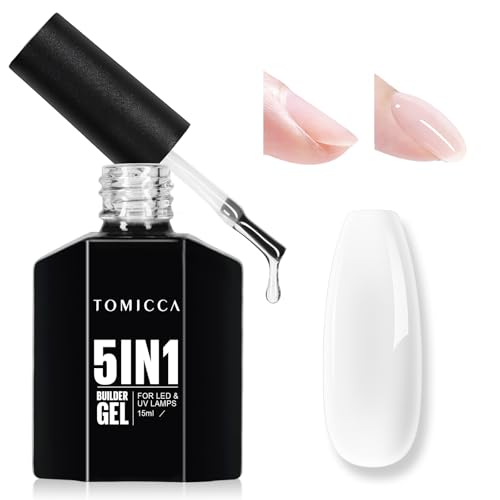 TOMICCA Builder Gel 5 en 1 15ML, Blanc Laiteux Gel Construction Ongle UV, Soak Off UV/LED Gel Ongles pour Nail Extension, Réparation de Manucure, Renforcement, les Décalcomanies et les Bijoux