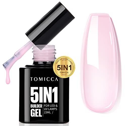 TOMICCA Builder Gel 5 en 1 15ML, Rose Clair Gel Construction Ongle UV, Soak Off UV/LED Gel Ongles pour Nail Extension, Réparation de Manucure, Renforcement, les Décalcomanies et les Bijoux