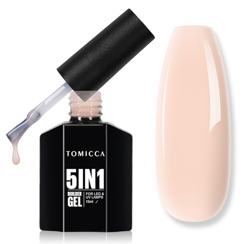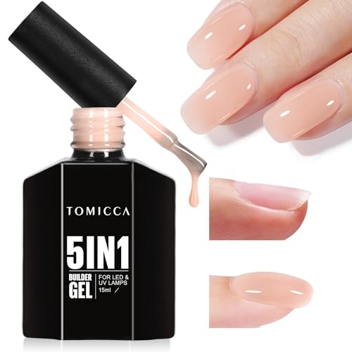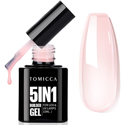 TOMICCA Builder Gel 5 en 1 15ML, Nude Gel Construction Ongle UV, Soak Off UV/LED Gel Ongles pour Nail Extension, Réparation de Manucure, Renforcement, les Décalcomanies et les Bijoux