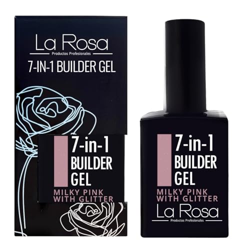 LaRosa GEL ONGLE UV Construction 7 en 1 en Flacon BUILDER GEL Fortifiant 15ml - ROSE LAITÉ AVEC PAILLETTES